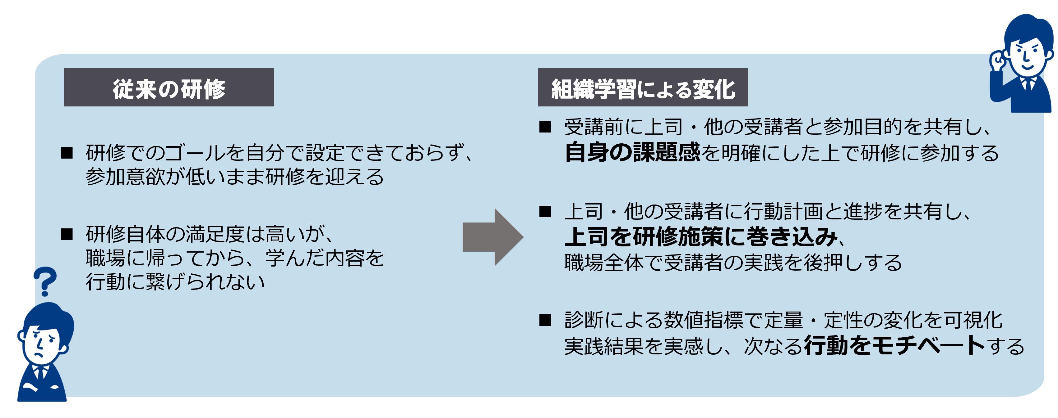 今回取り上げた事例において、従来実施されていた研修では解決しきれなかった人事のお悩みがありました。