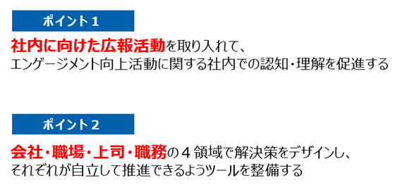 ポイント1:社内に向けた広報活動を取り入れて、エンゲージメント向上活動に関する社内での認知・理解を促進する
