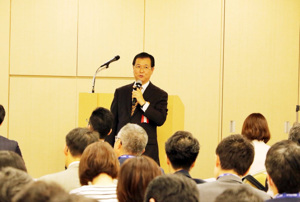 講演の冒頭、鬼本講師はいきなりこんな問いを投げかけました。鬼本講師は京都大学理学部宇宙物理学科出身。かの湯川秀樹博士の薫陶を受けた元サイエンティストらしく、意表を突く喩え話で、「経営理念」という観念的なテーマに受講者の興味を誘います。