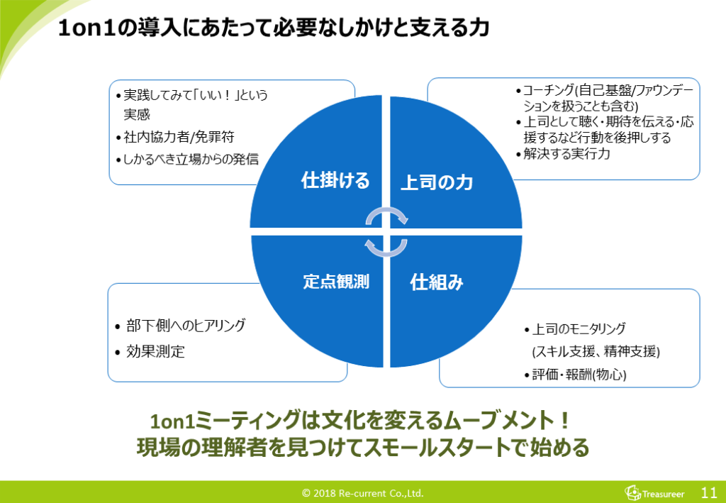 リ・カレントが考える「1on1導入にあたって必要なしかけと支える力」は下図の通りです。
