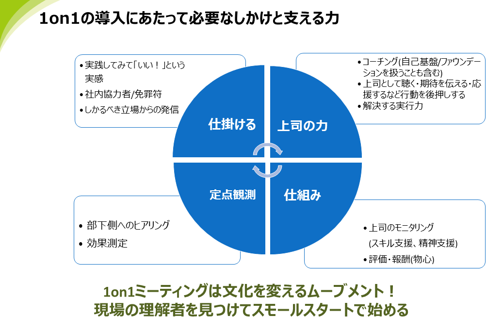 リ・カレントが考える「1on1導入にあたって必要なしかけと支える力」は下図の通りです。