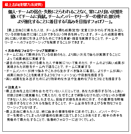 フォロワーシップの実践における具体的な課題を解決するために、例として「最上志向」「学習欲」など資質ごとのフォロワーシップ発揮例が紹介されました。