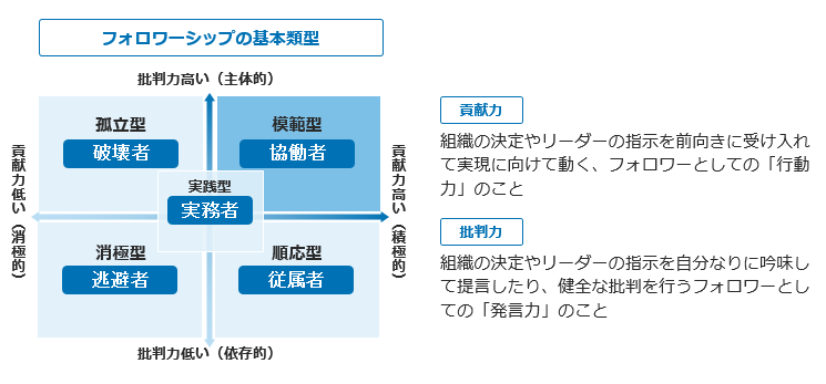 フォロワーシップは基本、「貢献力」と「批判力」の2軸から成ります。
