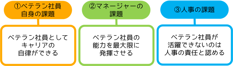 この中でも特に重要なのが「①ベテラン社員自身の課題」。